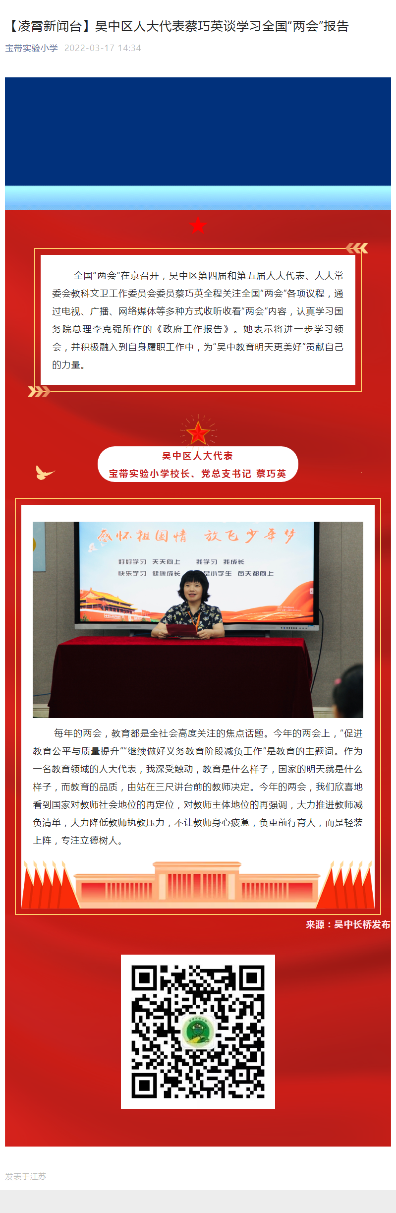 【凌霄新闻台】吴中区人大代表蔡巧英谈学习全国“两会”报告