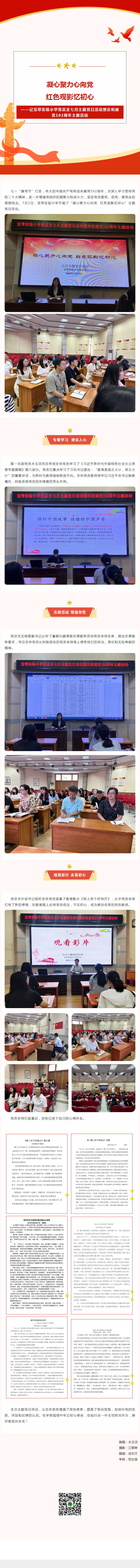 【凌霄新闻台】凝心聚力心向党 红色观影忆初心——记宝带实验小学党总支七月主题党日活动暨庆祝建党102周年主题活动 来源: 发布时间:2023-07-15 10:06:35 浏览次数: 次 【字体:小 大】 分享到: 【打印正文】