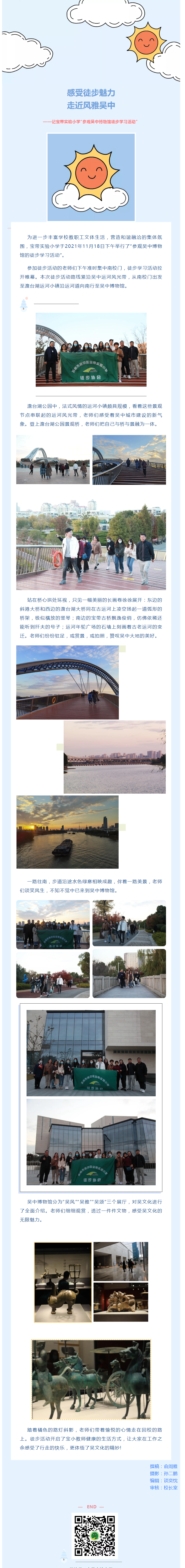【凌霄新闻台】感受徒步魅力 走近风雅吴中 ——记宝带实验小学“参观吴中博物馆徒步学习活动” 来源: 发布时间:2021-11-26 15:57:41 浏览次数: 次 【字体:小 大】 分享到: 【打印正文】