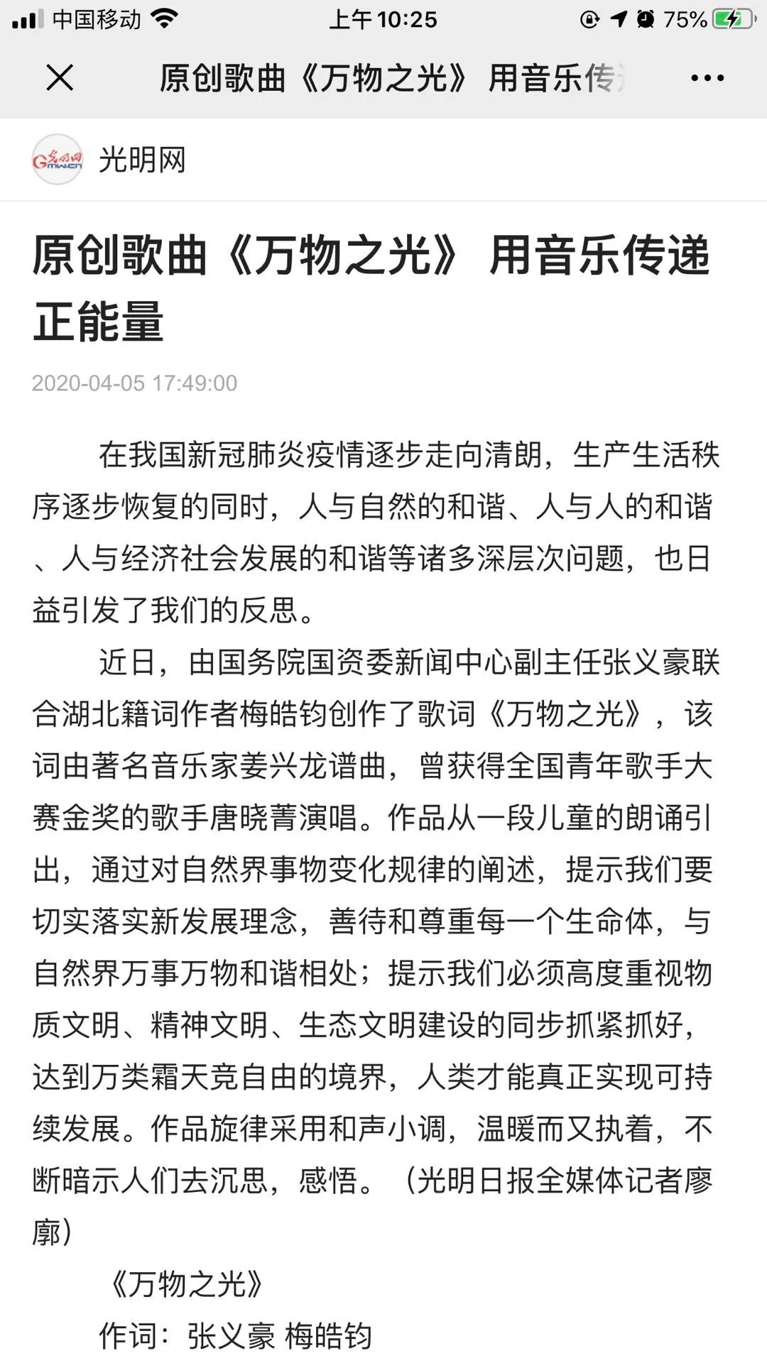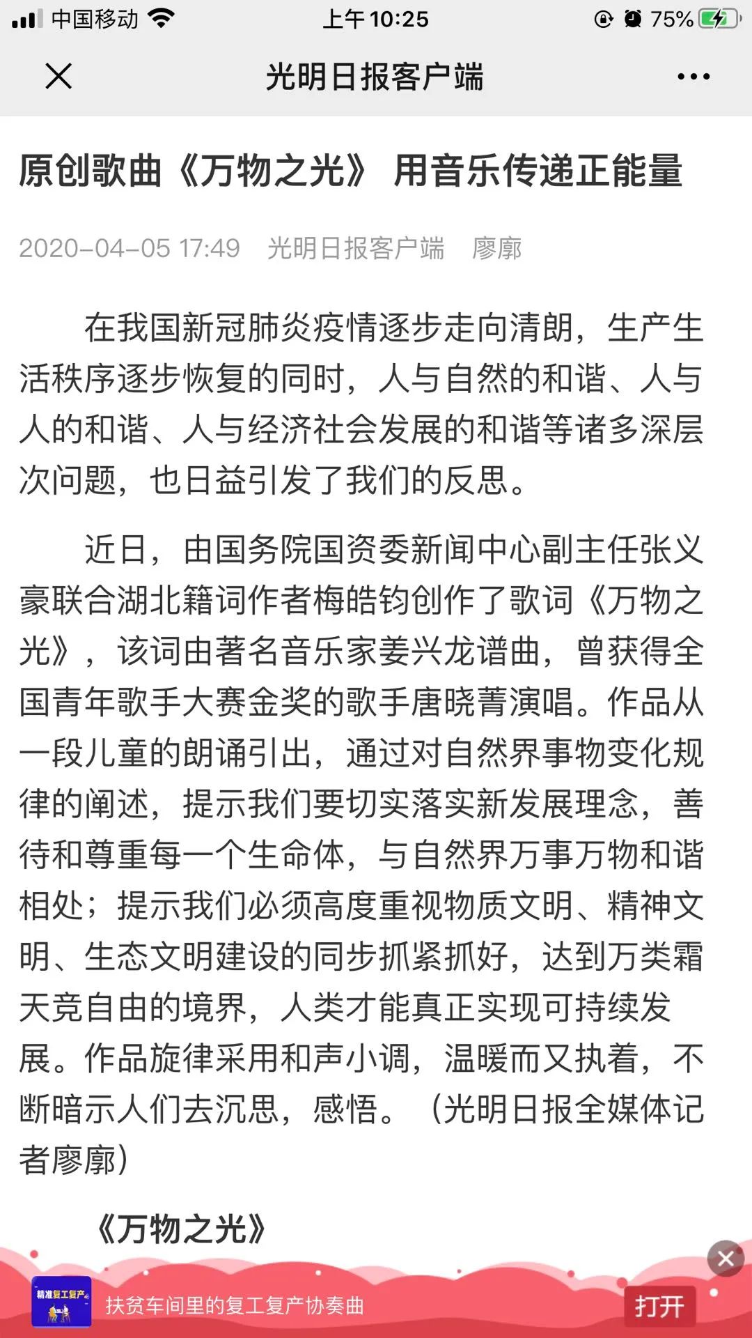 致敬抗疫英雄之歌上‘学习强国’啦!”