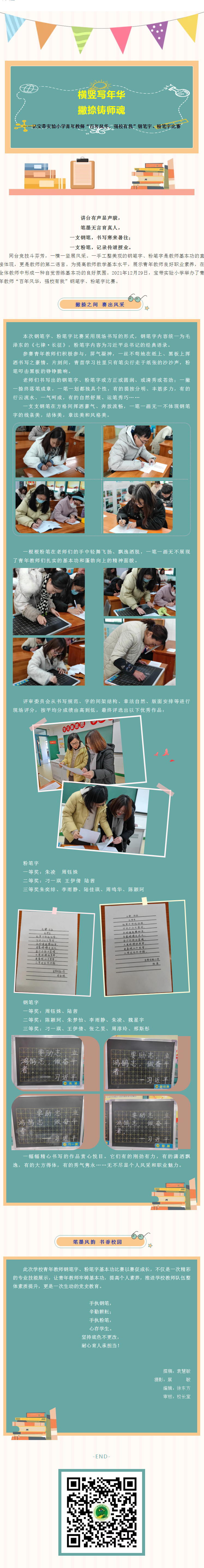 【凌霄新闻台】横竖写年华 撇捺铸师魂 ——记宝带实验小学青年教师“百年风华,强校有我”钢笔字、粉笔字比赛 来源: 发布时间:2022-01-11 12:13:22 浏览次数: 次 【字体:小 大】 分享到: 【打印正文】