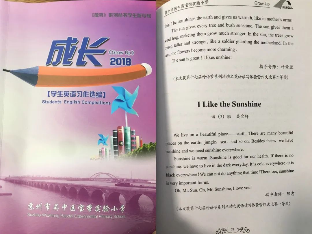 她的多篇英语习作发在《成长》上。