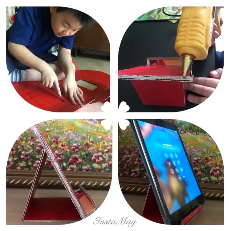 废弃的纸箱,画好图纸,裁剪一下,使用热熔枪粘合,一个实用好看的平板支架问世啦!