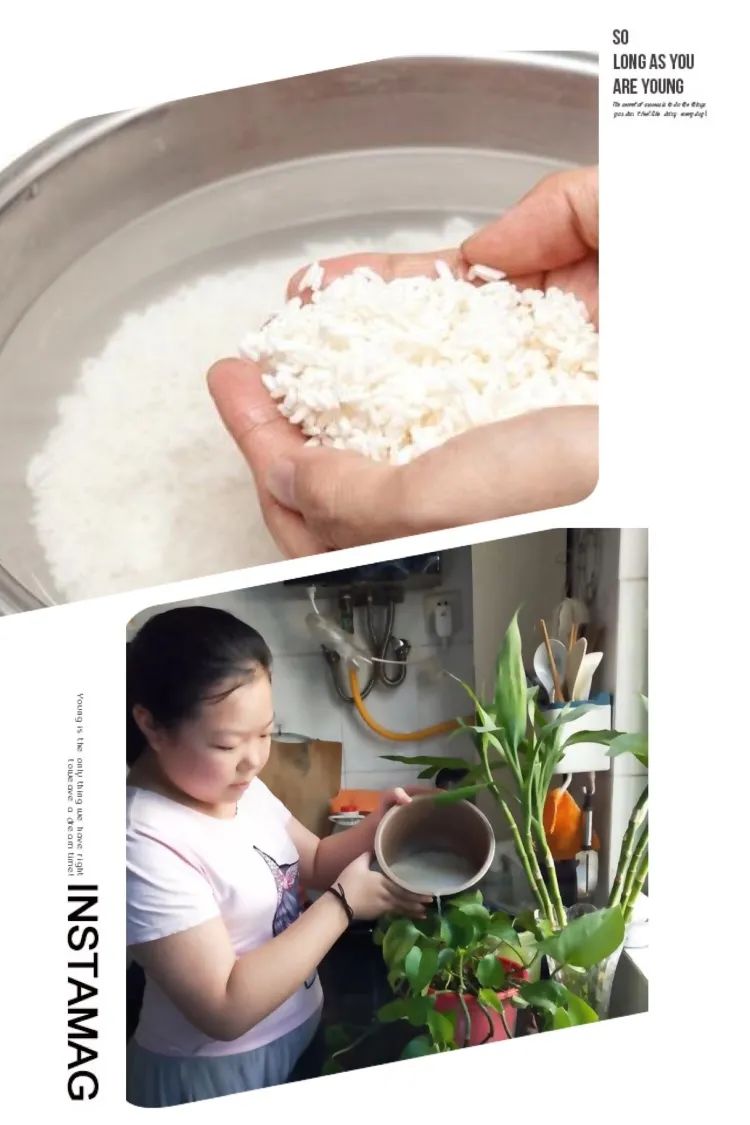 煮饭前,将大米提前浸泡十分钟,再用电饭锅煮,这样可以缩短煮饭时间,节约用电。淘米水可用来洗菜,这样可以节约用水。
