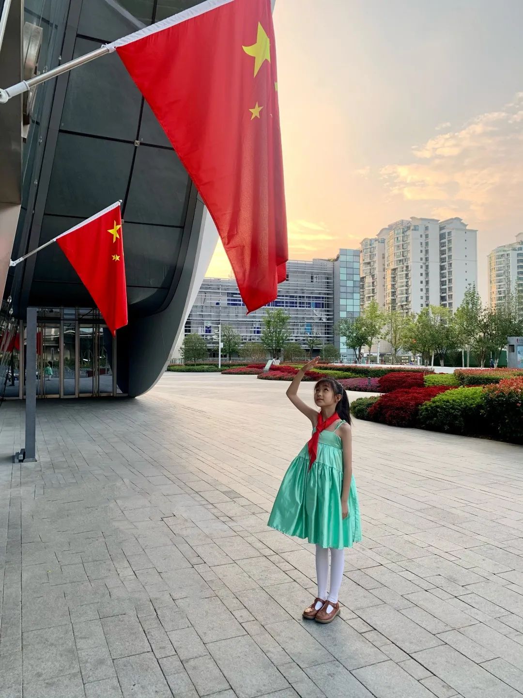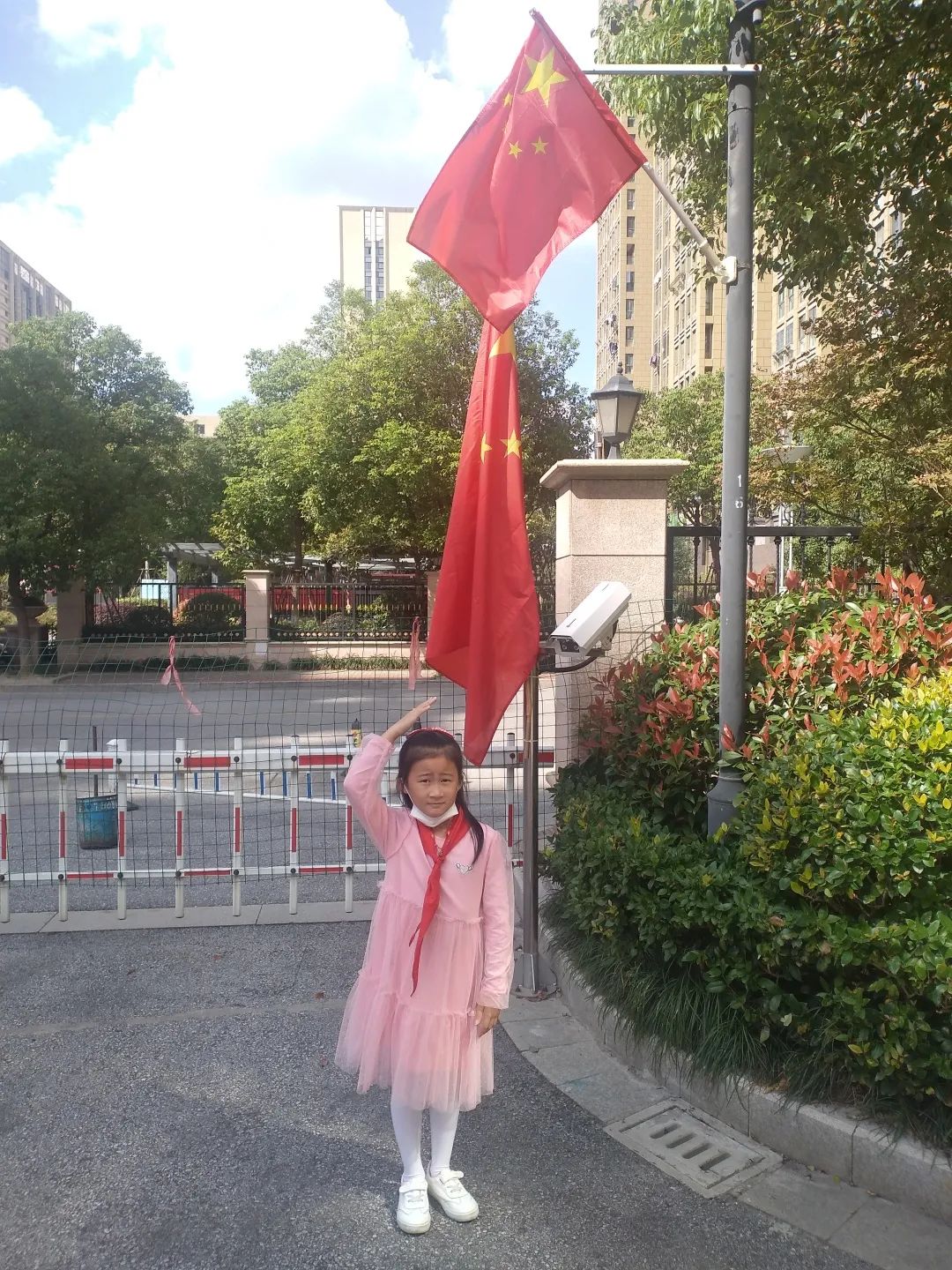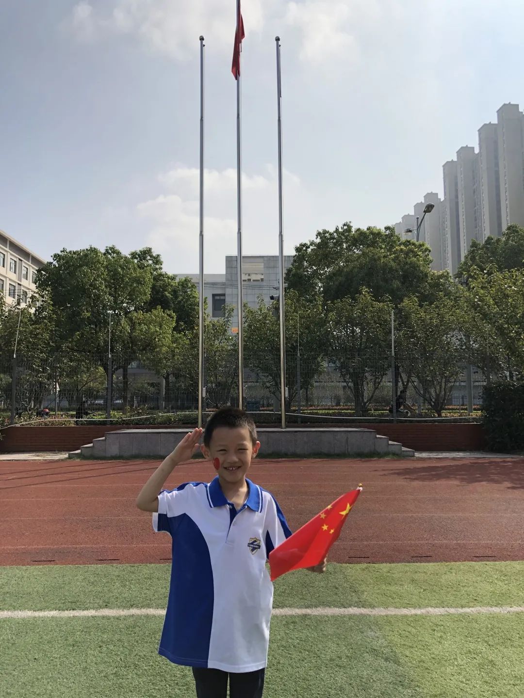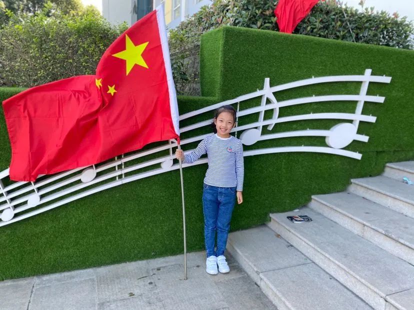 与国旗合影