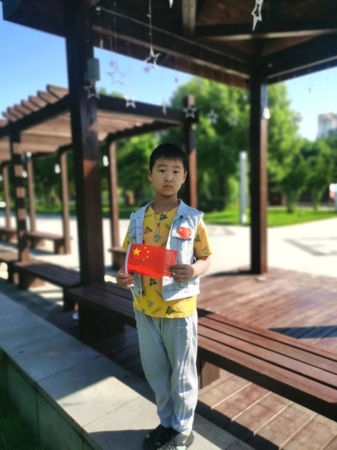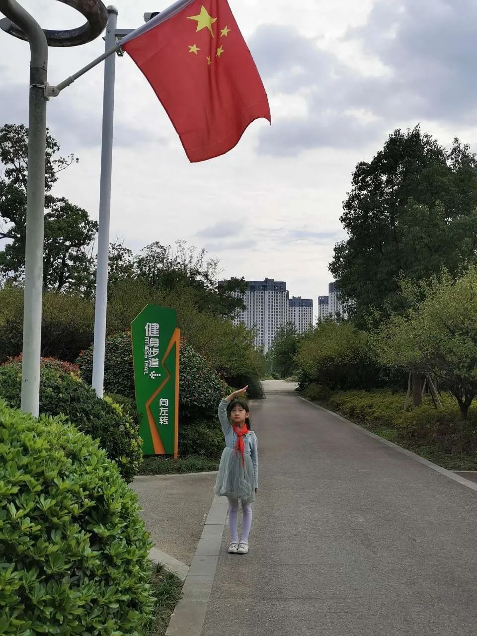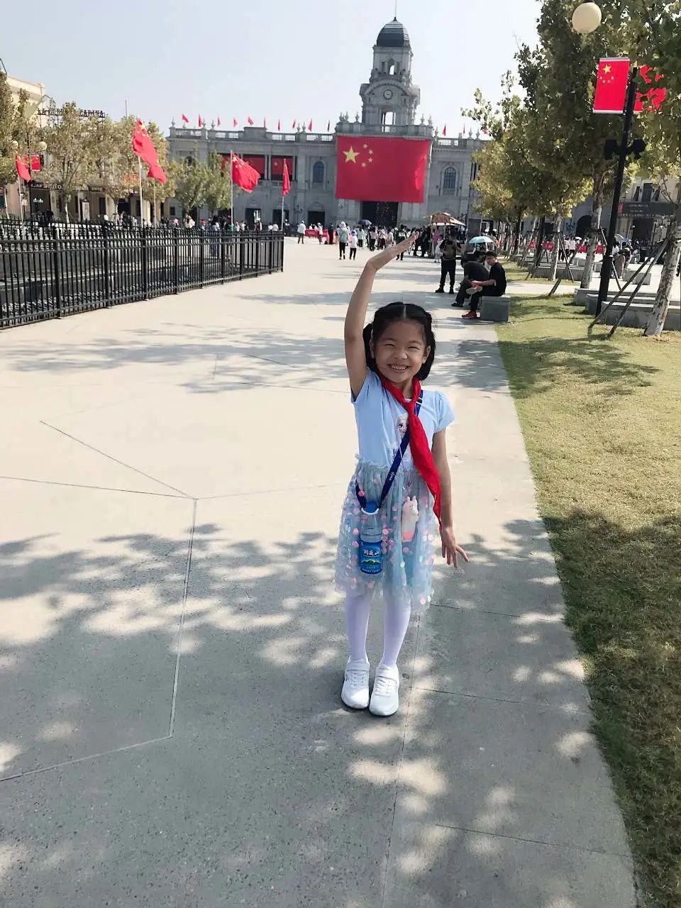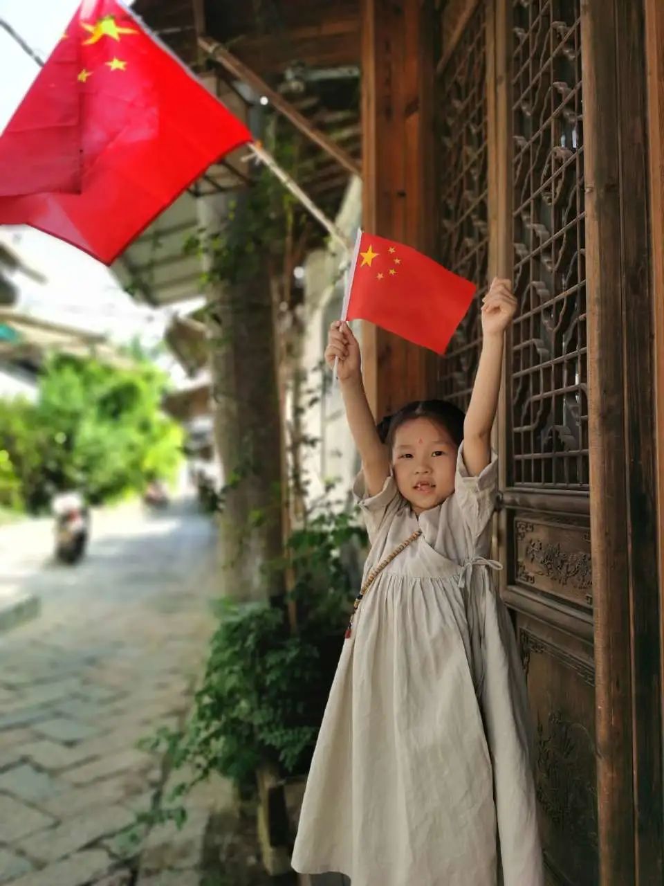 与国旗合影