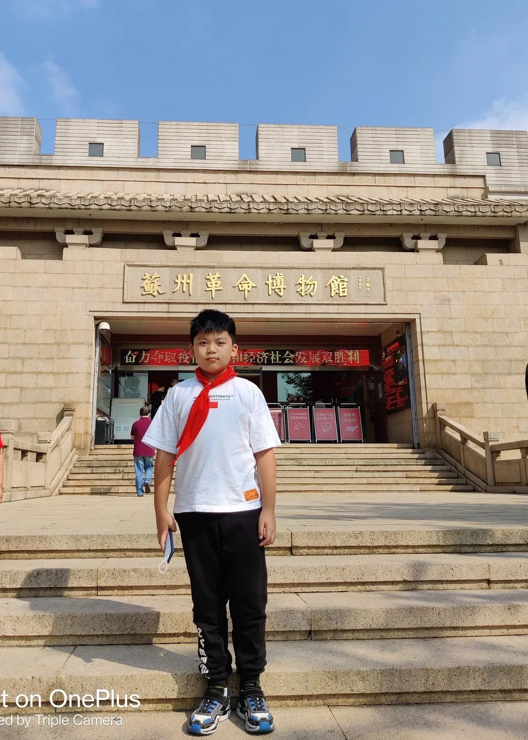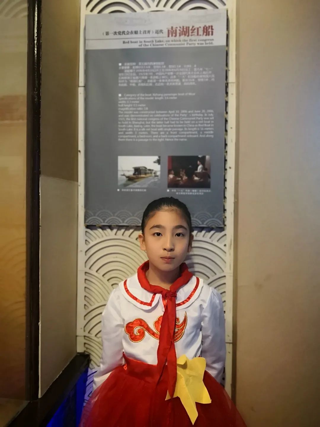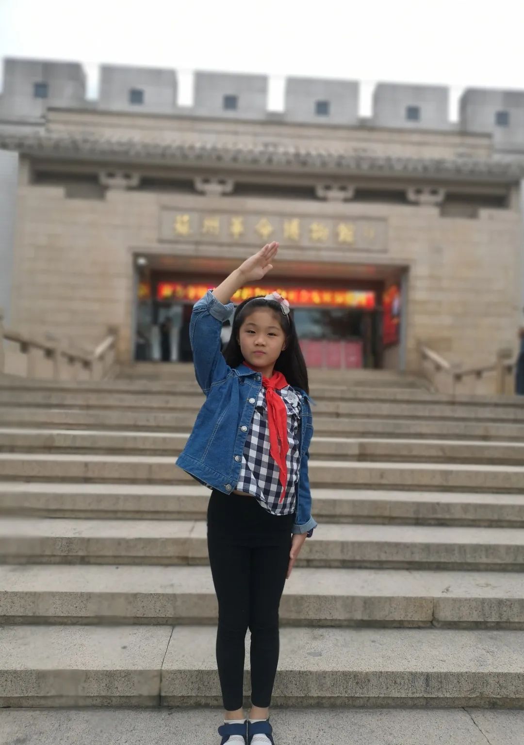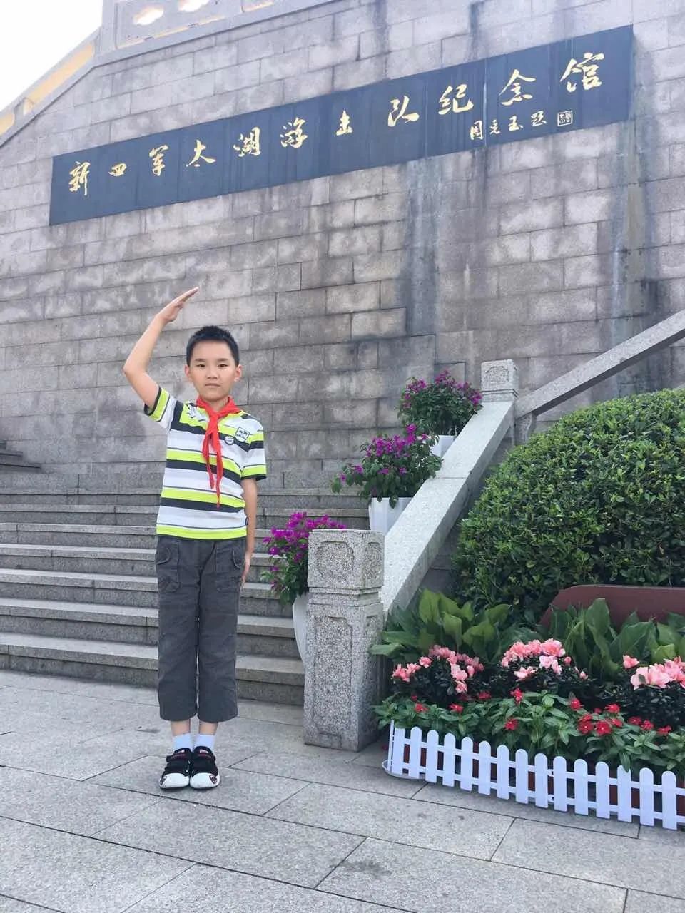 与国旗合影