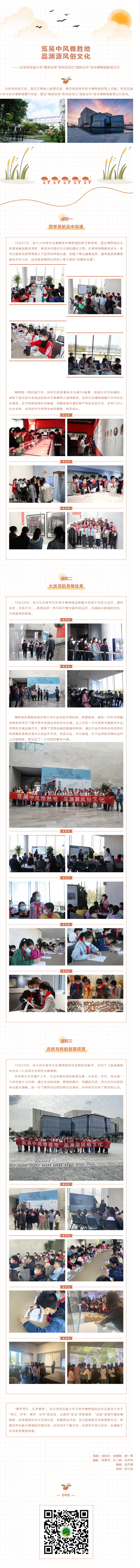 【凌霄新闻台】览吴中风雅胜地 品渊源风俗文化 ——记宝带实验小学“情系宝带”系列活动之“馆校合作”吴中博物馆教育之行 来源: 发布时间:2021-11-03 11:02:48 浏览次数: 次 【字体:小 大】 分享到: 【打印正文】
