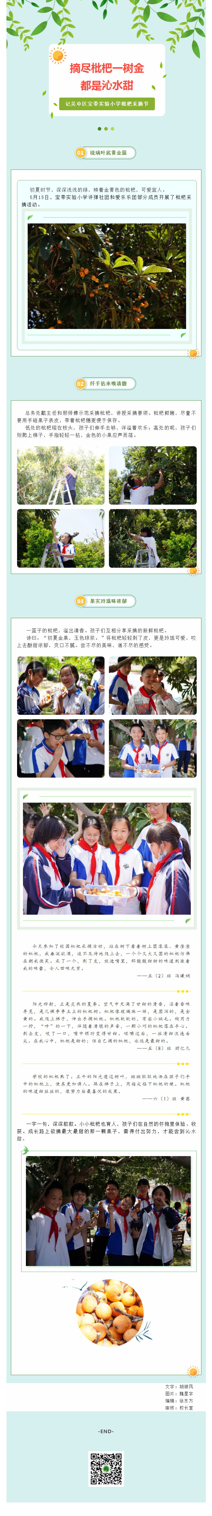 【凌霄新闻台】摘尽枇杷一树金 都是沁水甜——记吴中区宝带实验小学枇杷采摘节