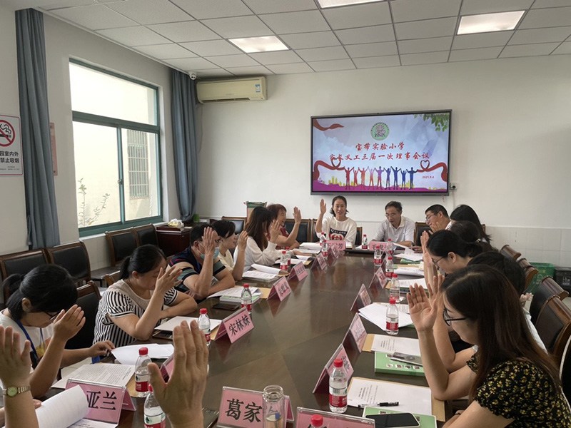 9月4日,宝带实验小学第三届家长义工理事会举行第一次会议,理事长毛虎强主持会议,副理事长沈月、杨海红、冉桂兰、袁丽逸、宣莹老师和理事出席会议。蔡巧英校长和德育处王雪芳主任到会祝贺。