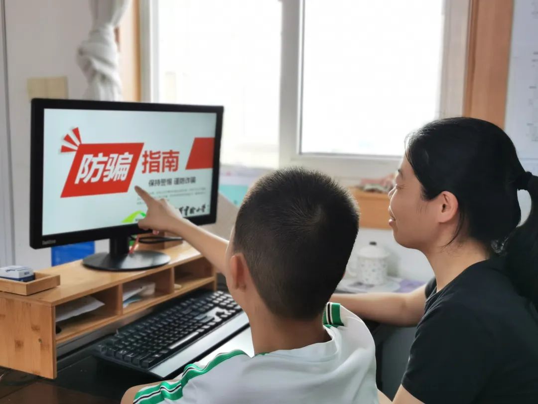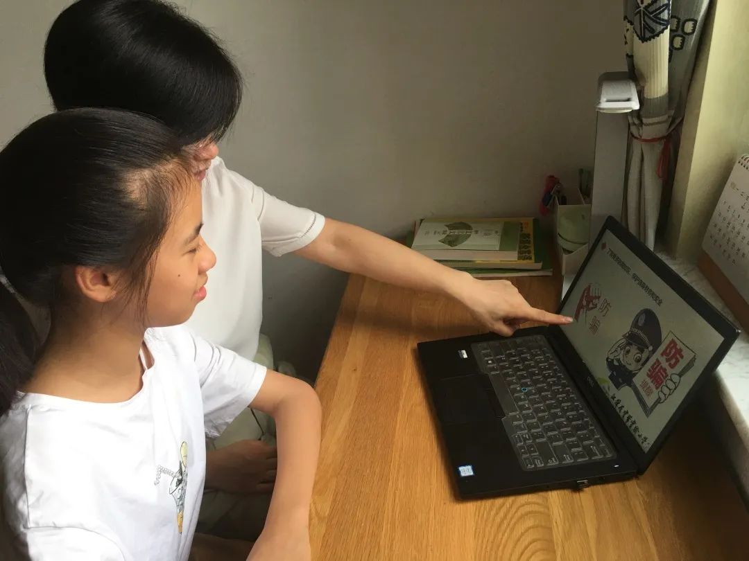 小手牵大手,防骗知识一起学。孩子和家长在家中一起学习防骗知识,通过小手牵大手的方式,提高家长防诈骗的思想意识和自我保护水平。