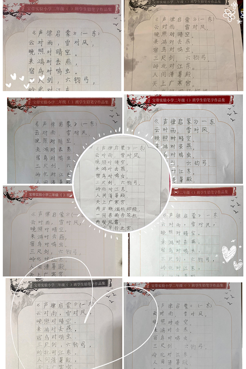 书法作为我国传统文化的瑰宝,源远流长,博大精深。为传承民族经典,展示学生的书法风采,提升学生的审美情趣,培养学生认真书写的良好习惯,同时为区、市级比赛选送优秀的作品,我校二年级学生利用居家学习时间,举行了一场精彩而别样的铅笔字比赛。