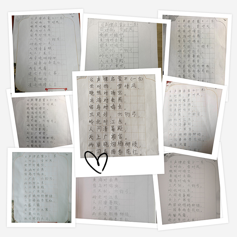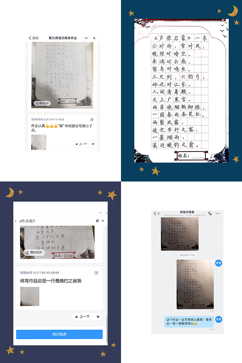 赛前,水玉洁老师为本次比赛设计了精美的稿纸;荀春花老师为二年级的小朋友们精心准备了书写的样张;各班的语文老师也尽心尽力地在线指导小朋友们参赛。二年级的小朋友们虽然因为疫情只能待在家中,但是参赛的热情只增不减,他们主动练习,认真书写,为这次比赛做足了准备。