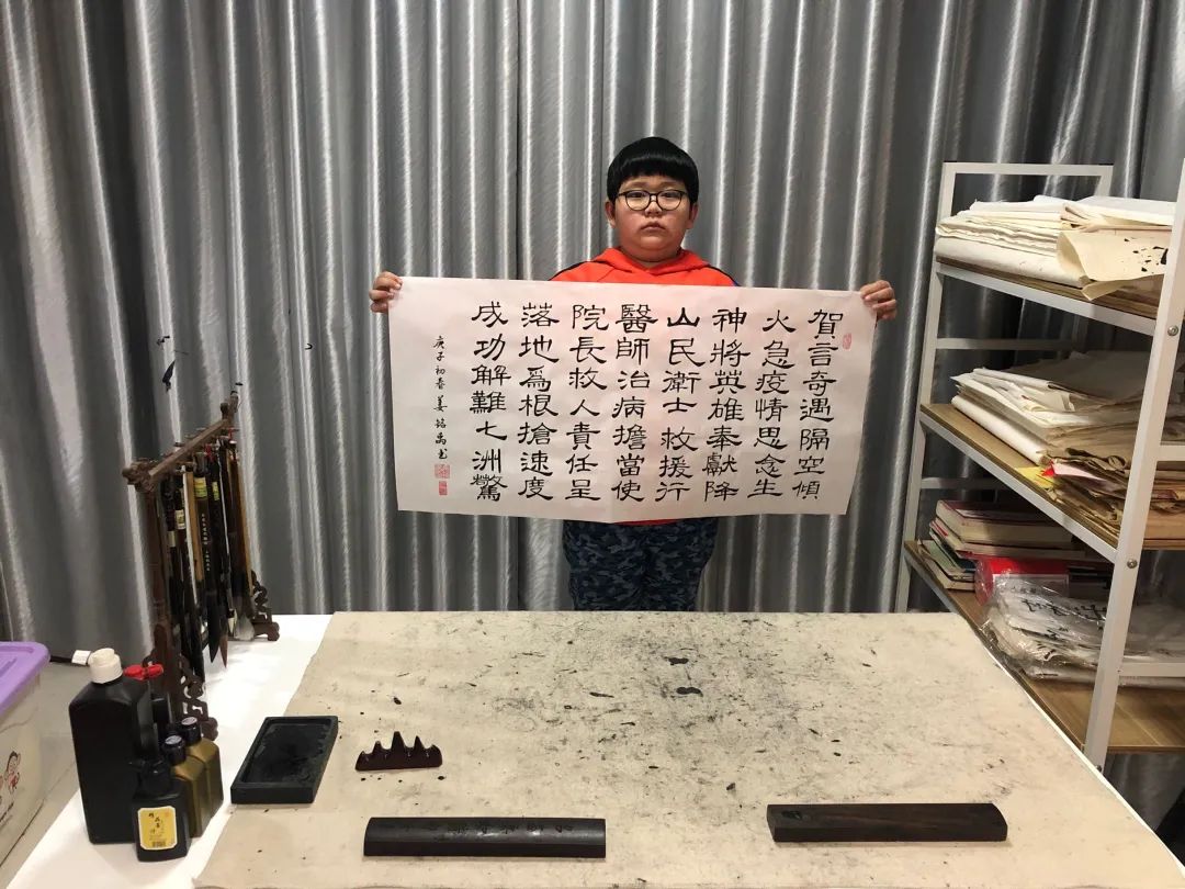 大家好!我是来自五(1)班的薛淇原。今年是我学毛笔字的第三年,但是第一次的挫败感还在眼前。在我不断努力下,我的毛笔字有了大大的进步。如今的我更加有动力,想取得更加优异的成绩,毕竟坚持才会有胜利,阳光总在风雨后,相信我以后会取得更优异的成绩。