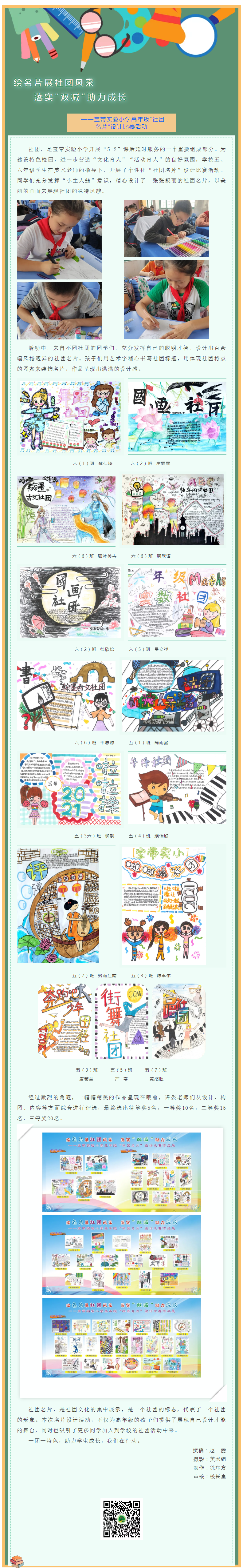 【凌霄新闻台】绘名片展社团风采 落实“双减”助力成长 ——宝带实验小学高年级“社团名片”设计比赛活动 来源: 发布时间:2021-11-18 16:12:54 浏览次数: 次 【字体:小 大】 分享到: 【打印正文】