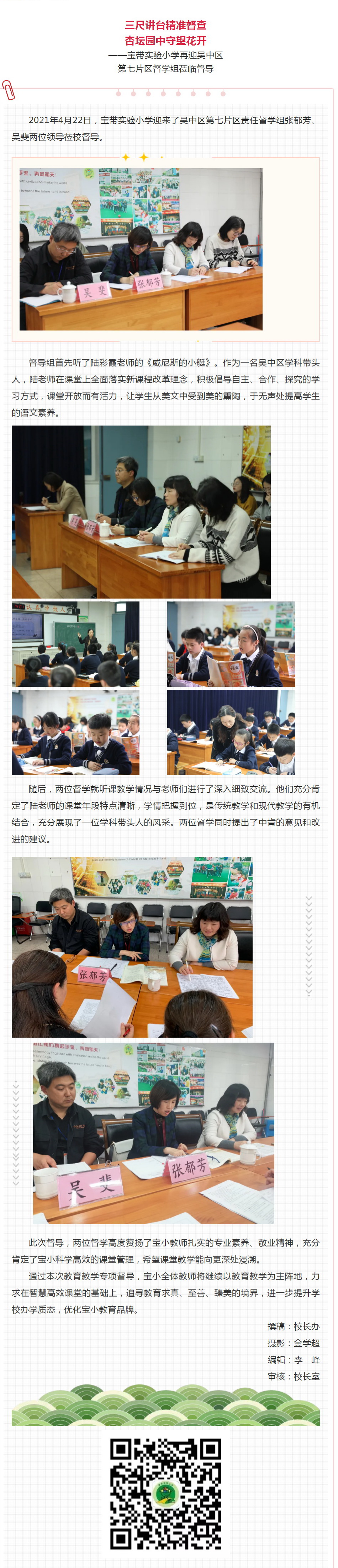 三尺讲台精准督查 杏坛园中守望花开 ——宝带实验小学再迎吴中区 第七片区督学组莅临督导 来源: 发布时间:2021-04-26 16:17:14 浏览次数: 次 【字体:小 大】 分享到: 【打印正文】