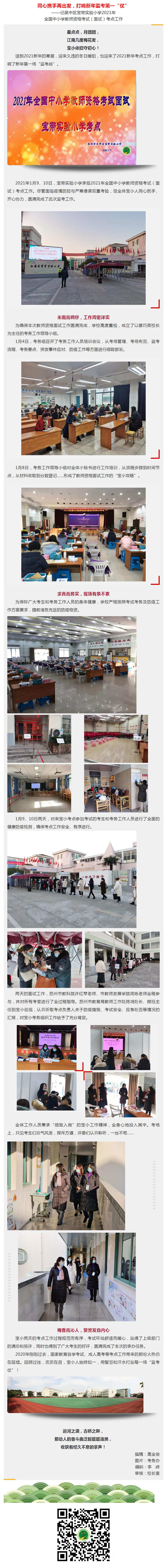 同心携手再出发,打响新年监考第一“仗” ——记吴中区宝带实验小学2021年 全国中小学教师资格考试(面试)考点工作 来源: 发布时间:2021-01-11 12:48:39 浏览次数: 次 【字体:小 大】 分享到: 【打印正文】
