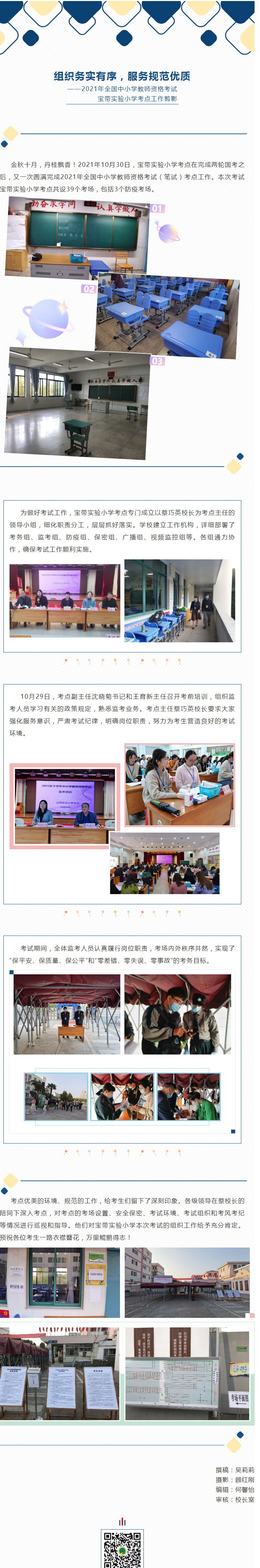 组织务实有序,服务规范优质 ——2021年全国中小学教师资格考试 宝带实验小学考点工作剪影 来源: 发布时间:2021-11-03 10:59:40 浏览次数: 次 【字体:小 大】 分享到: 【打印正文】